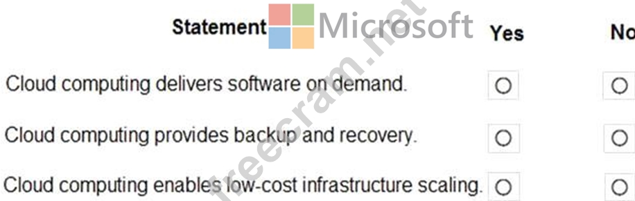 For each of the following statements, select Yes if the statement is true. Otherwise, select No.
