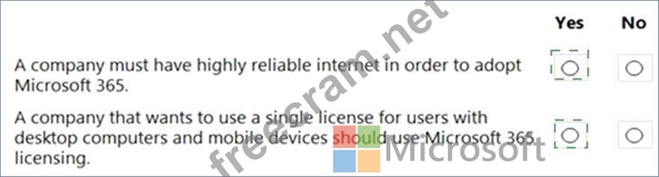 Question 58: A company is evaluating Microsoft 365, For each of the follo...