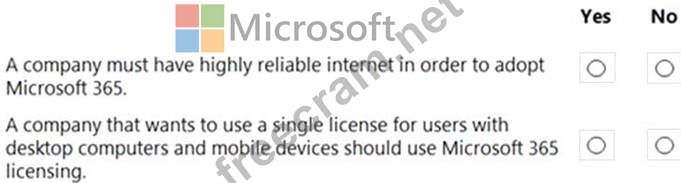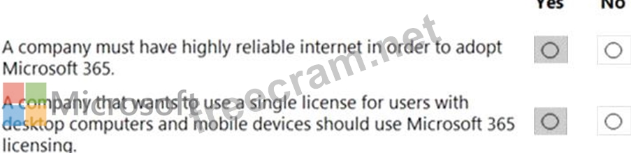Question 45: A company is evaluating Microsoft 365. For each of the follo...
