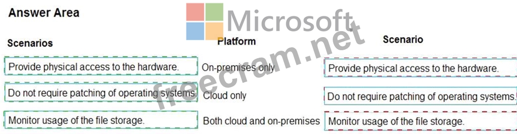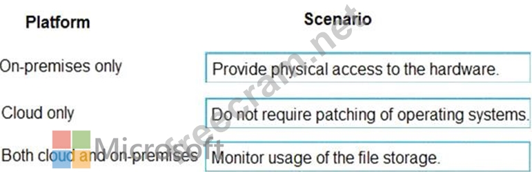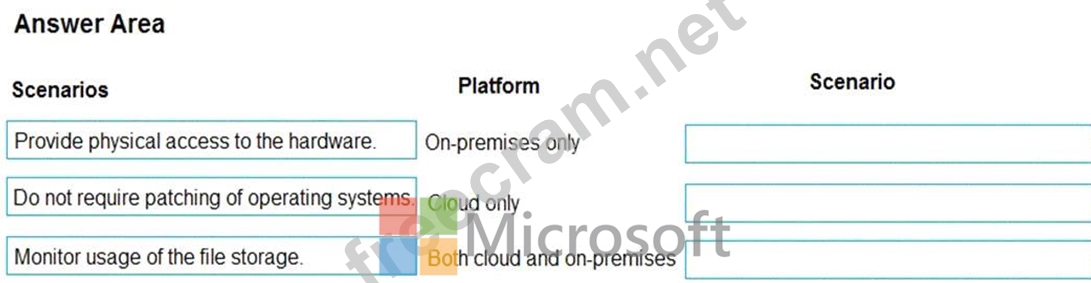 Instructions: To answer, drag the appropriate scenario from the column on the left to its platform or platforms on the right. Each scenario may be used only once.