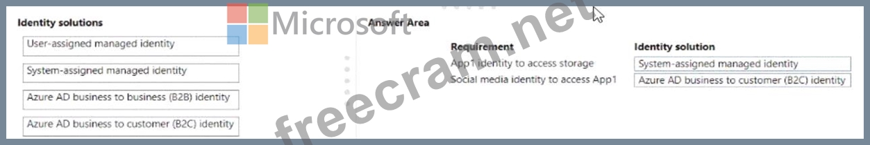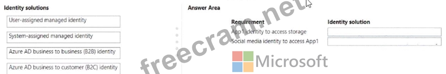 What should you use? To answer, drag the appropriate identity solution to the correct requirement. Each identity solution may be used once, more than once, or not at all. You may need to drag the split bar between panes or scroll to view content.