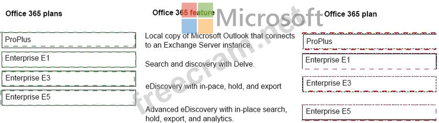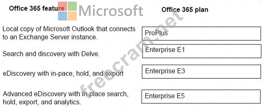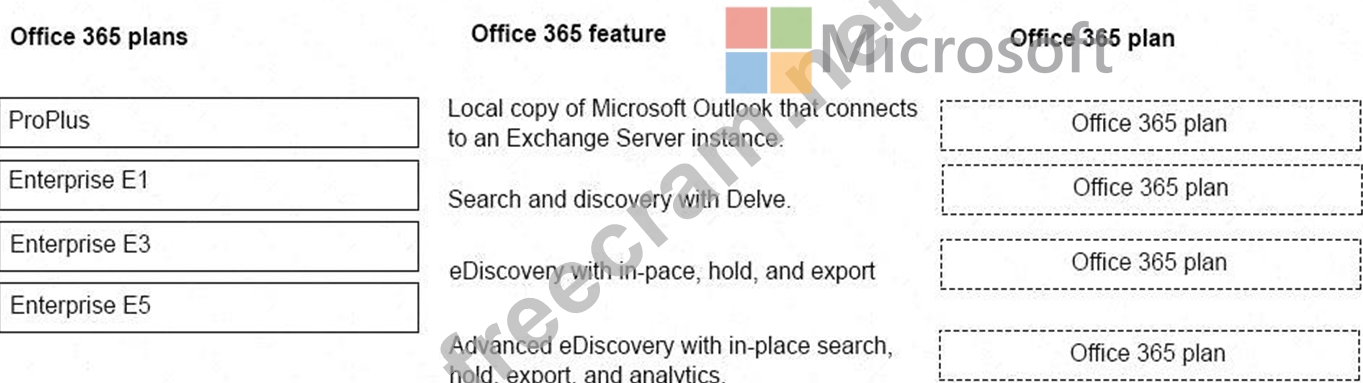 Which subscription plans should you recommend? Toanswer, drag the appropriate plans to the correct features. Each plan may be used once, more than once, or not at all.