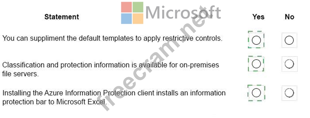 For each of the following statements, select Yes if the statement is true. Otherwise, select No.