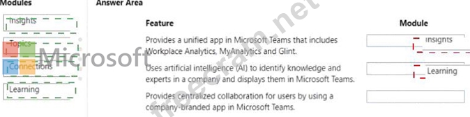 You need to recommend the appropriate Microsoft Viva modules.