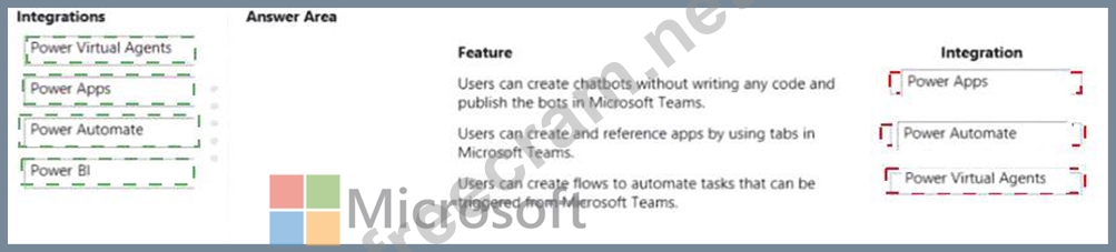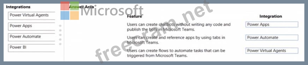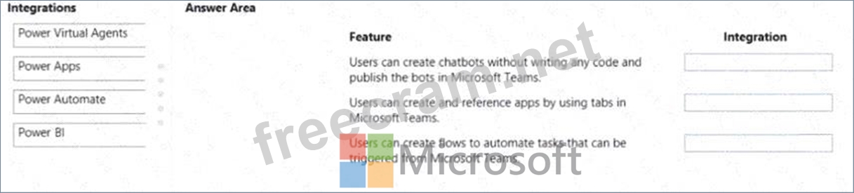 You need to recommend the Microsoft Power Platformintegration that provides the appropnate feature.