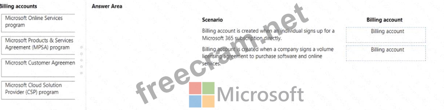 You need to recommend a billing accountoptions.Which billing account type should you recommend?