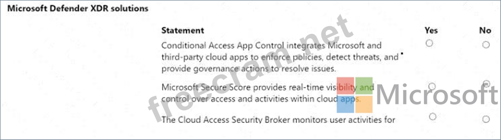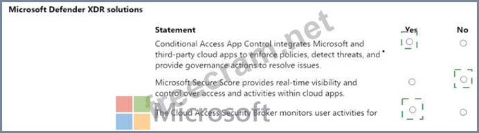 For each of the following statements, select Yes if the statement is true. Otherwise, select No.