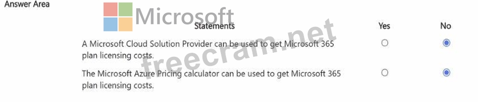 A company plans to use Microsoft 365. The company needs to determine licensing costs.