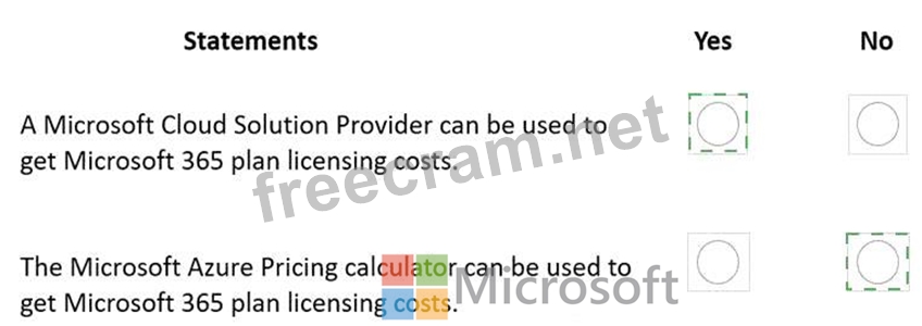 Instructions: For each of the following statements, select Yes if the statement is true. Otherwise, select No.