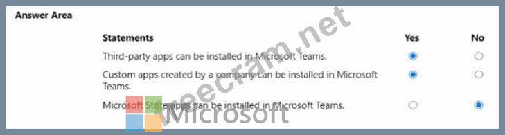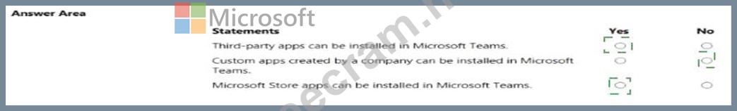 Question 162: Your company uses Microsoft Teams. Instructions: For each of...