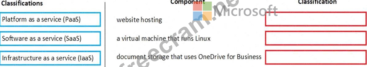 Match each component to its classification. To answer, drag the appropriate components from the column on the left to its classifications on the right. Each component may be used once, more than once, or not at all.