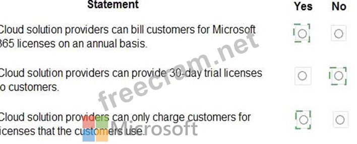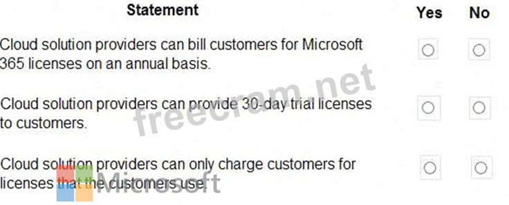 For each of the following statements, select Yes if the statement is true. Otherwise, select No.