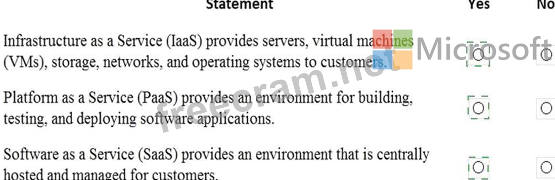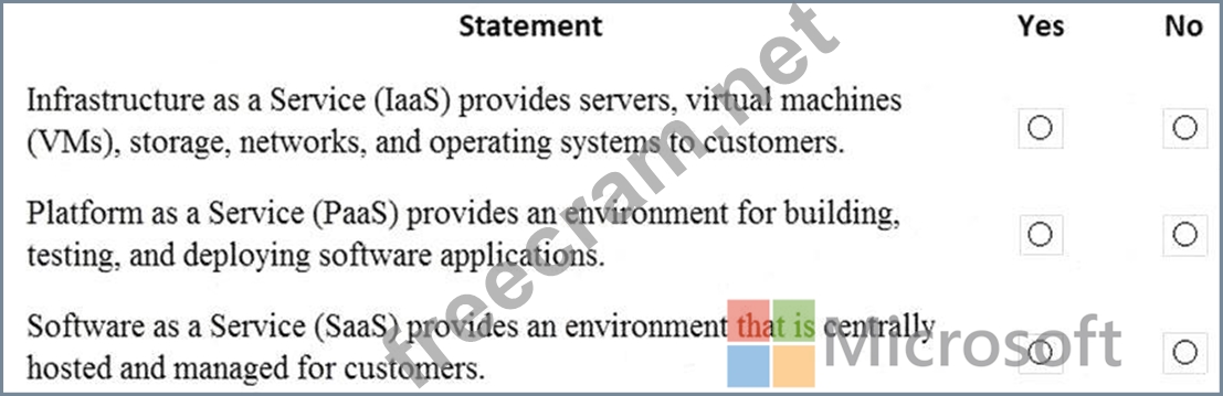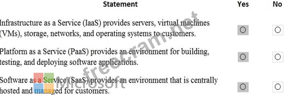 For each of the following statements, select Yes if the statement is true. Otherwise, select No.
