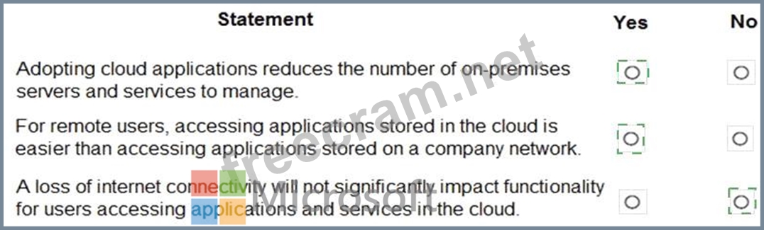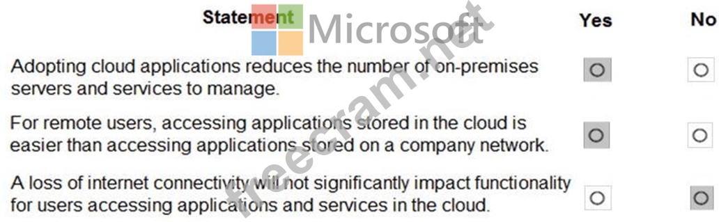 For each of the following statements, select Yes if the statement is true. Otherwise,select No.
