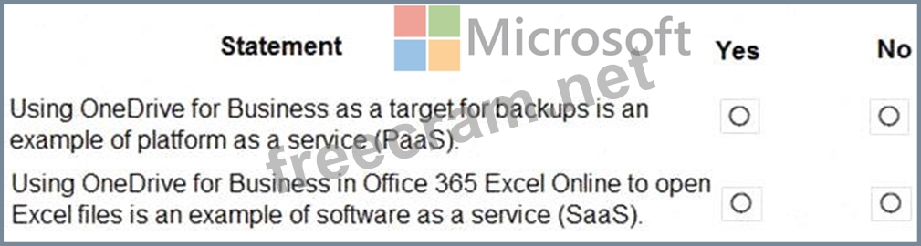 For each of the following statements, select Yes if the statement is true. Otherwise, select No.
