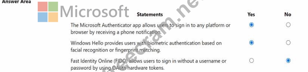 Instructions: For each of the following statements, select Yes if the statement is true. Otherwise,select No.