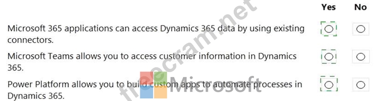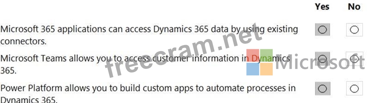 Instructions: For each of the following statements, select Yes if the statement is true. Otherwise, select No.