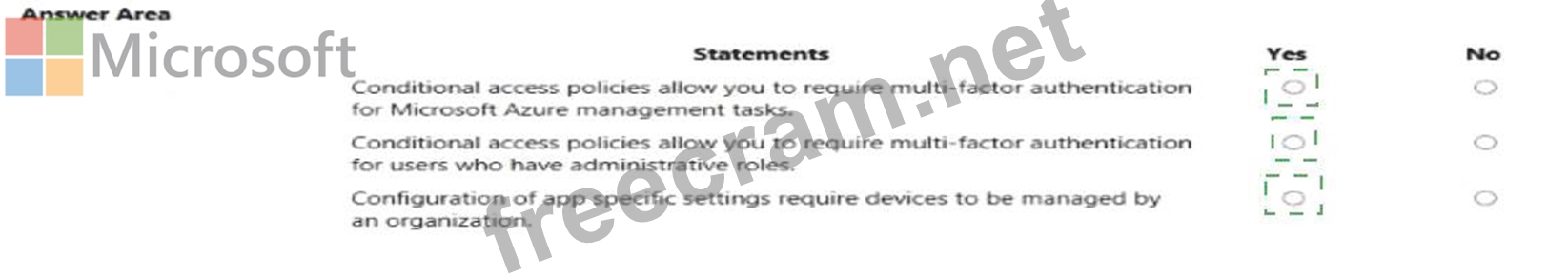 Instructions: For each of the following statements, select Yes if the statement is true. Otherwise, select No.