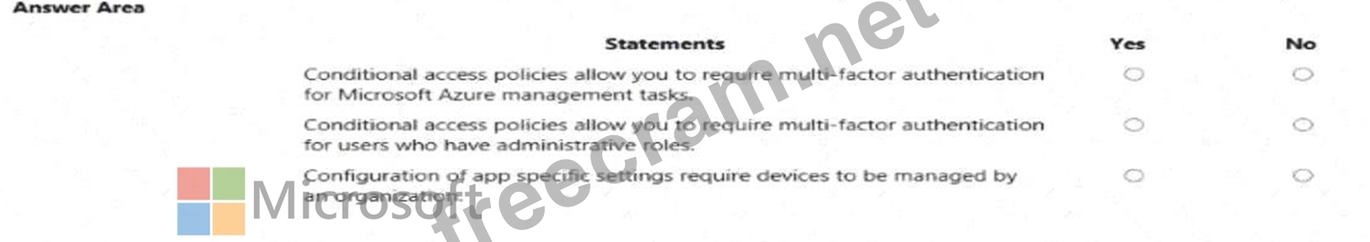 Question 119: A company is evaluating Microsoft 365, For each of the follo...