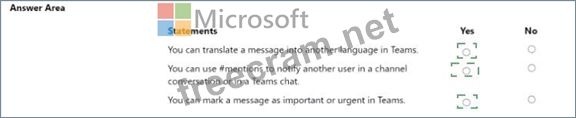 Question 162: Your company uses Microsoft Teams. Instructions: For each of...