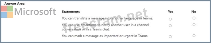 Question 92: A company uses Microsoft Team. Instructions: For each of the...