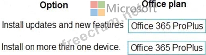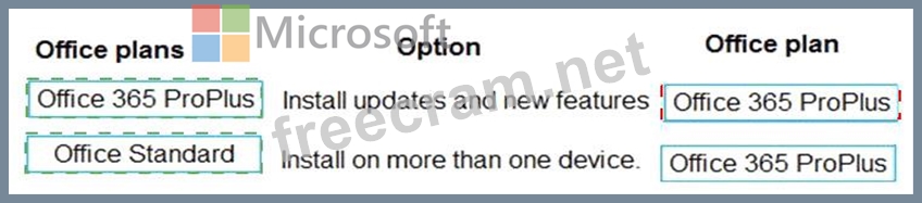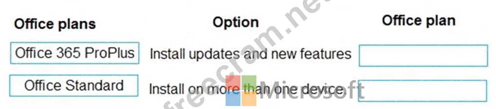 Which Office plans should you use? To answer, drag theappropriate Office plans to the correct options. Each Office plan may be used once, more than once, or not at all. You may need to drag the split bar between panes or scroll to view content.