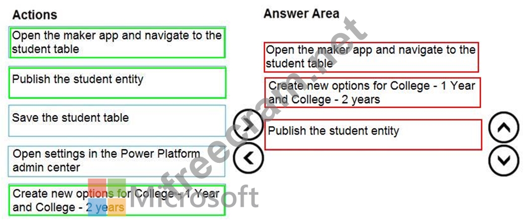 Which three actions should you perform in sequence? To answer, move the appropriate actions from the list of actions to the answer area and arrange them in the correct order.