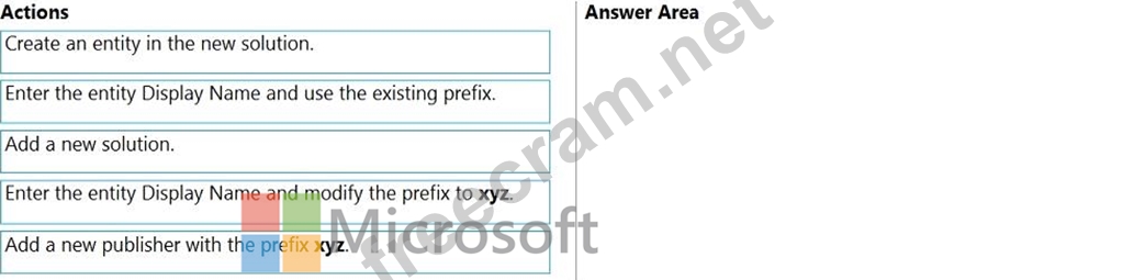 Which four actions should you perform in sequence? To answer, move the appropriate actions from the list of actions to the answer area and arrange them in the correct order.