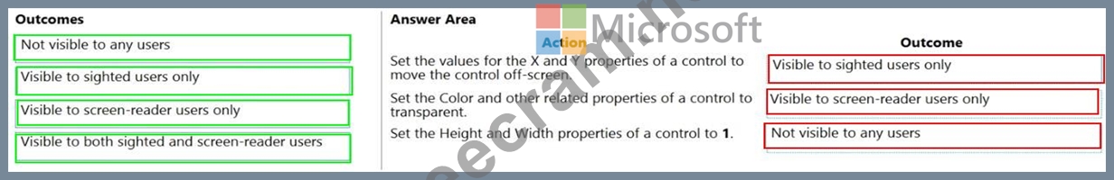 You are designing a canvas app that will be used by all users including users who have vision impairments.