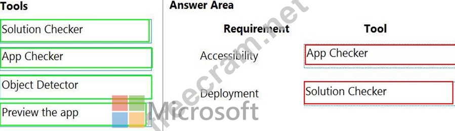 Which tools should you use? To answer, select the appropriate tool in the answer area.