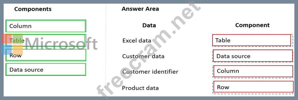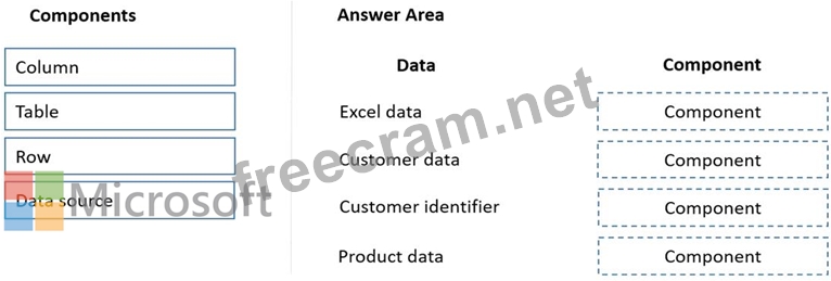 Which component should you use? To answer, drag the appropriate components to the correct data type. Each component may be used once, more than once, or not at all. You may need to drag the split bar between panes or scroll to view content.