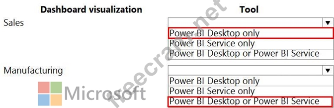 What should you use to create the visualizations? To answer, select the appropriate options in the answer area.