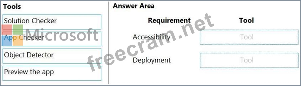 Which tools should you use? To answer, select the appropriate tool in the answer area.