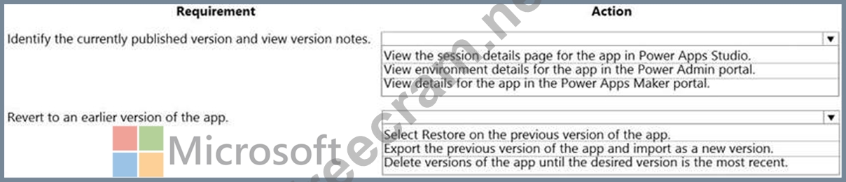 Question 70: You publish the first version of the app and solution on Nov...