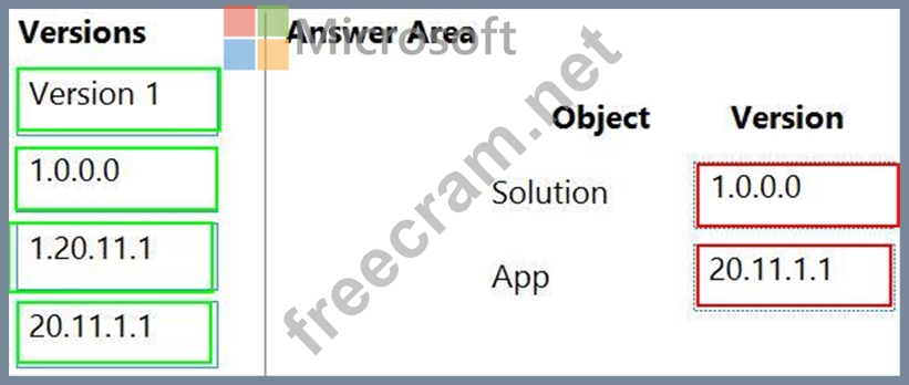 Which version numbers should you use? To answer, select the appropriate options in the answer area.