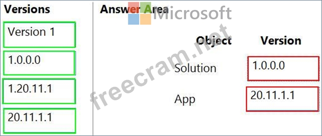 Which version numbers should you use? To answer, select the appropriate options in the answer area.