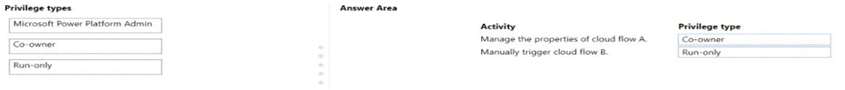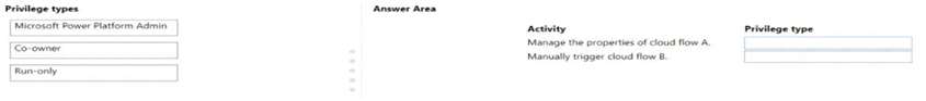 A company uses Power Automate. You manage two cloud flows named A and B. Users must perform the following activities: