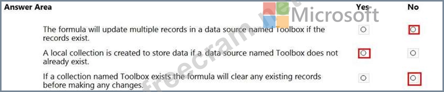 Question 35: A company uses Power Apps. The company requites a canvas app...