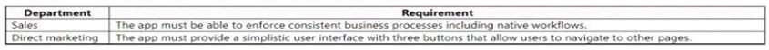 Question 35: A company uses Power Apps. The company requites a canvas app...