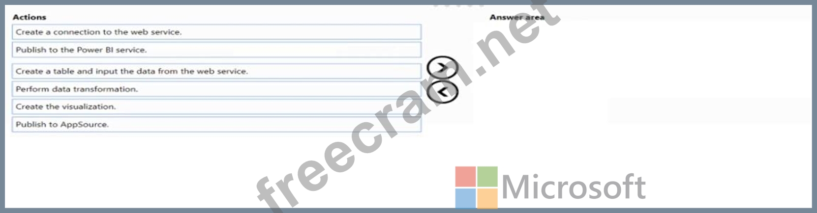 Which four actions should you perform in sequence? To answer, move the appropriate actions from the list of actions to the answer area and arrange them in the correct order.