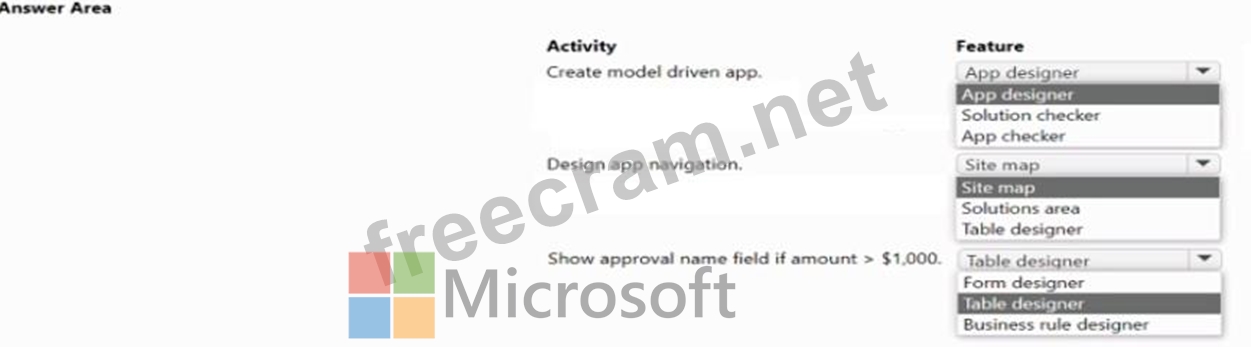 A company uses Power Apps and Microsoft Data verse. You need to perform the following activities: