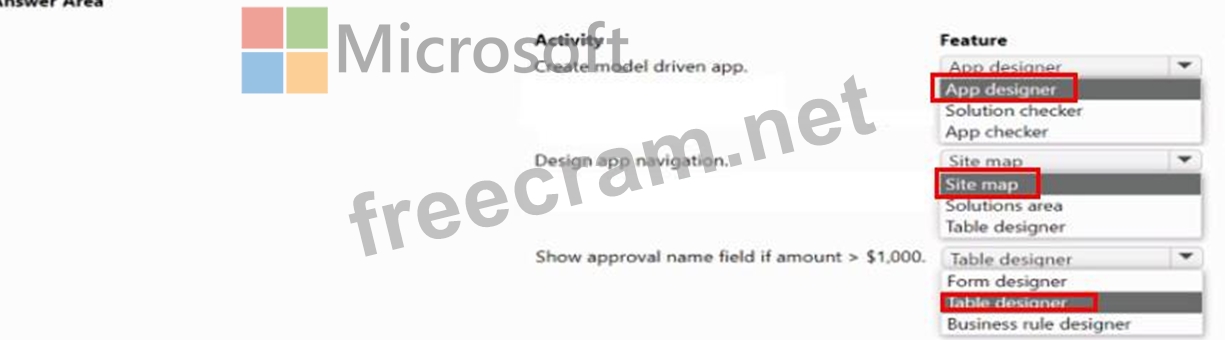 Question 20: A company creates an app that uses Microsoft Dataverse table...