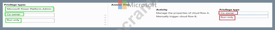 A company uses Power Automate. You manage two cloud flows named A and B. Users must perform the following activities: