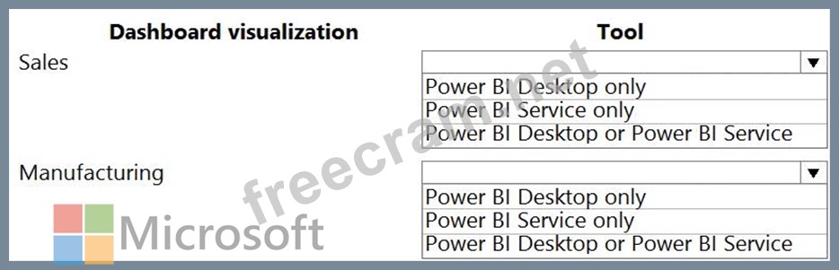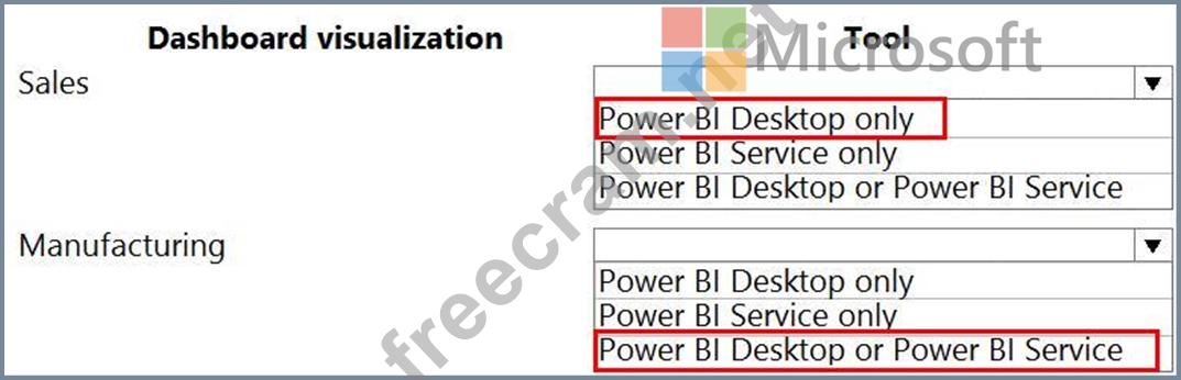 What should you use to create the visualizations? To answer, select the appropriate options in the answer area.