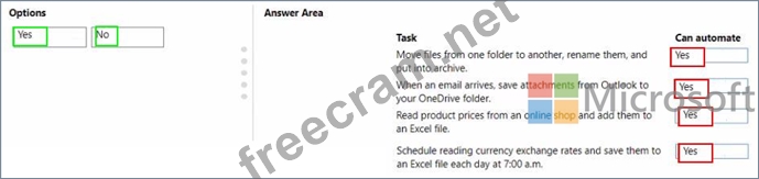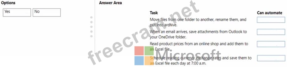 Which tasks can you automate? To answer, drag the appropriate can automate responses to the correct tasks. Each can automate response may be used once, more than once, or not at all. You may need to drag the split bar between panes or scroll to view content NOTE: Each correct selection is worth one point.