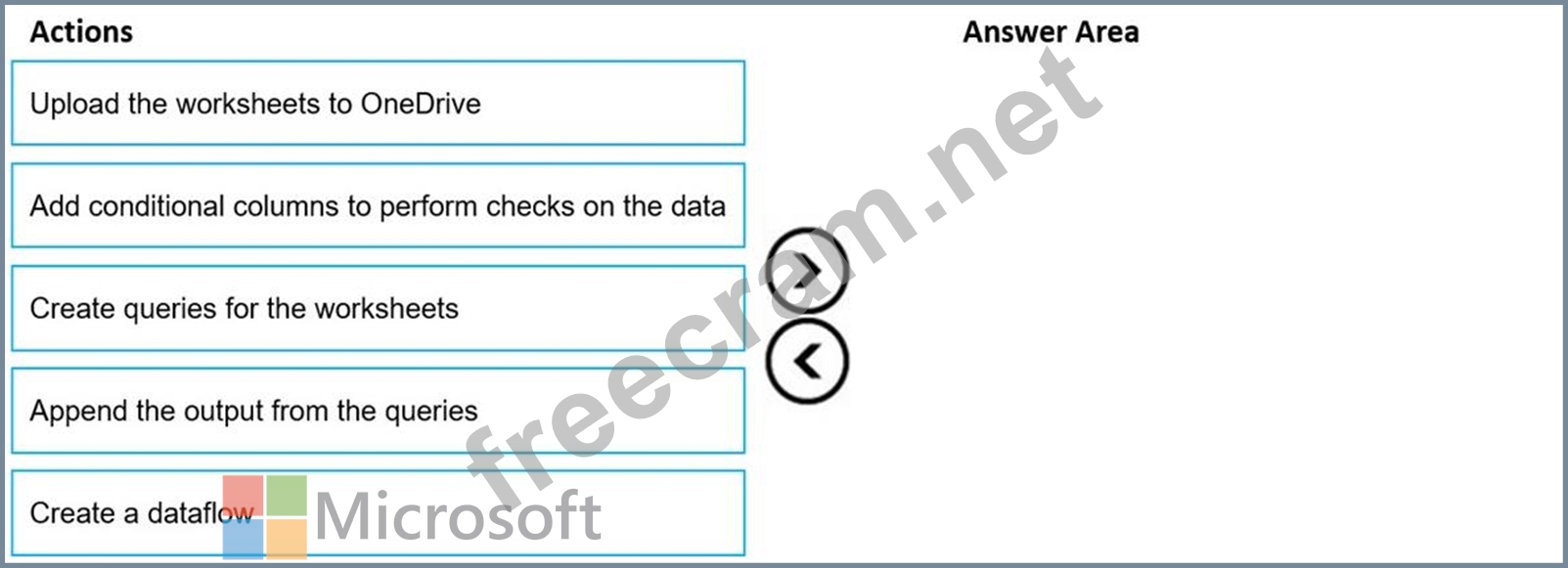 In which order should you perform the actions? To answer, move all actions from the list of actions to the answer area and arrange them in the correct order.
