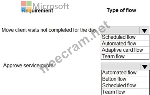 Which type of flows should you use? To answer, select the appropriate options in the answer area.
