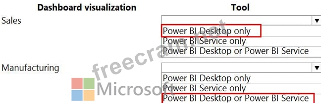 What should you use to create the visualizations? To answer, select the appropriate options in the answer area.