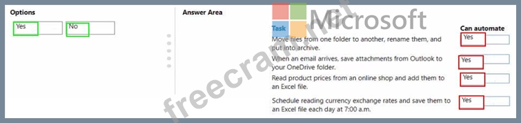Which tasks can you automate? To answer, drag the appropriate can automate responses to the correct tasks. Each can automate response may be used once, more than once, or not at all. You may need to drag the split bar between panes or scroll to view content NOTE: Each correct selection is worth one point.