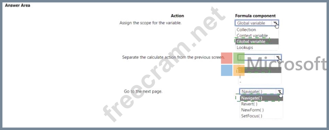 Question 82: You design a canvas app that has multiple screens. Each scre...